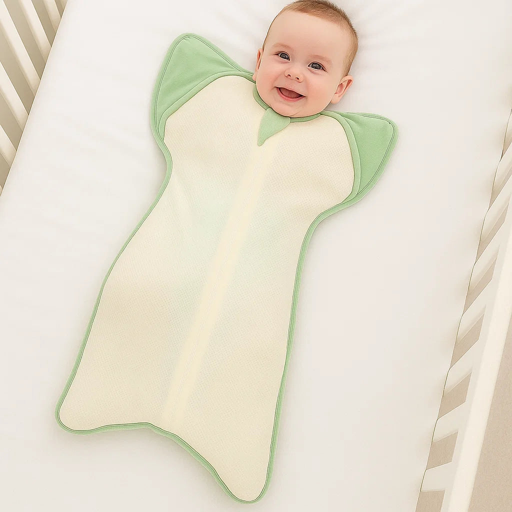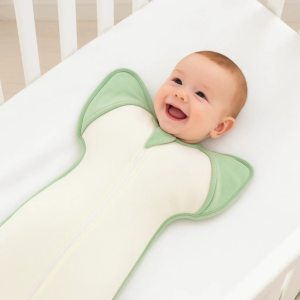 Traditional swaddles force arms down, blocking the natural self-soothing behavior babies need. The result? Nightly battles, frequent breakouts, and exhausted parents researching solutions at 3 AM.